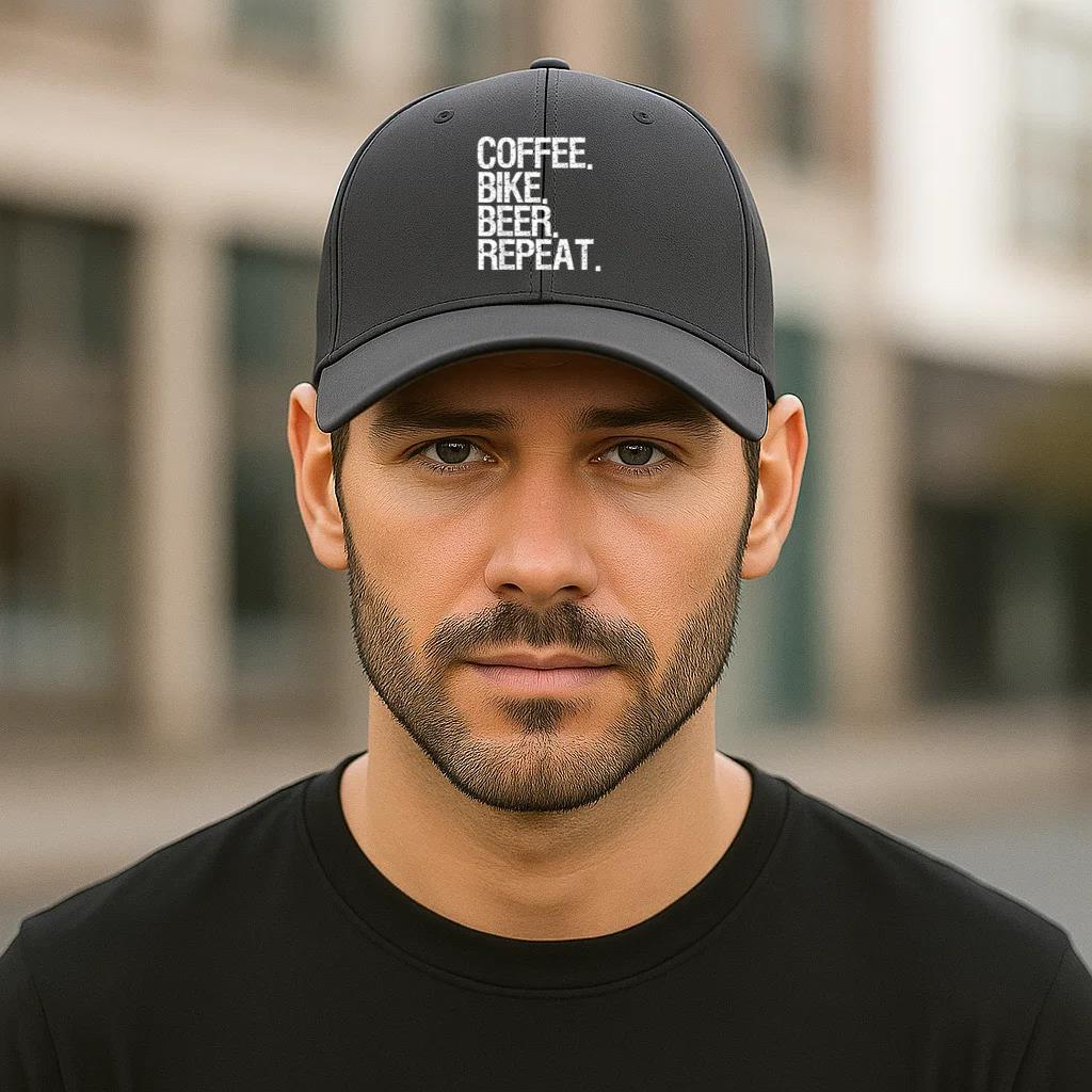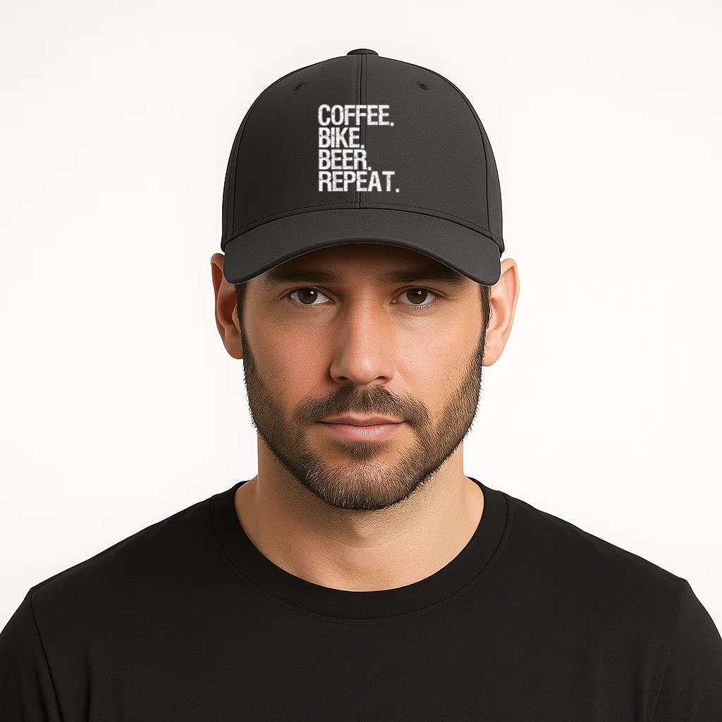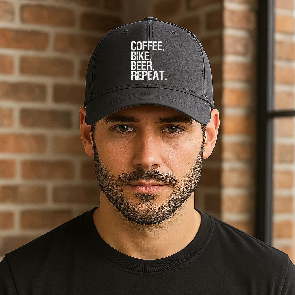 Coffee Bike Beer Repeat Drinking Beer Baseball Cap Baseball Cap – Adjustable 6-Panel Cotton Hat for Sports and Everyday Wear