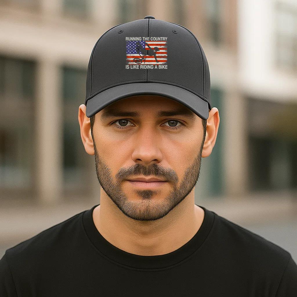 Running The Country Is Like Riding A Bike Baseball Cap Baseball Cap – Adjustable 6-Panel Cotton Hat for Sports and Everyday Wear