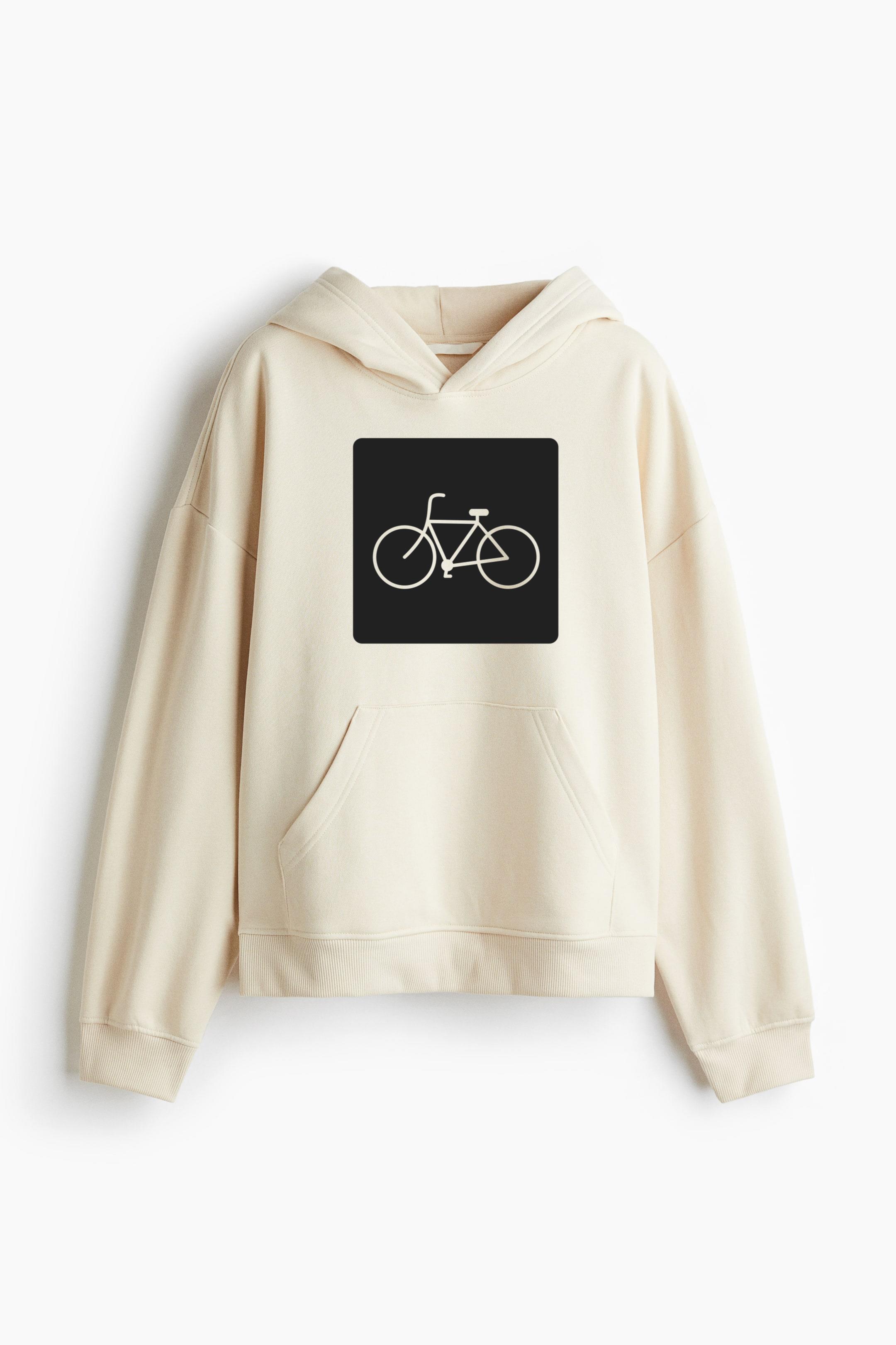 Simple Bicycle Square Icon Loose-Fit Printed Hoodie Loose-Fit Printed Hoodie – Soft Cotton-Blend Hoodie with Printed Design and Relaxed Silhouette