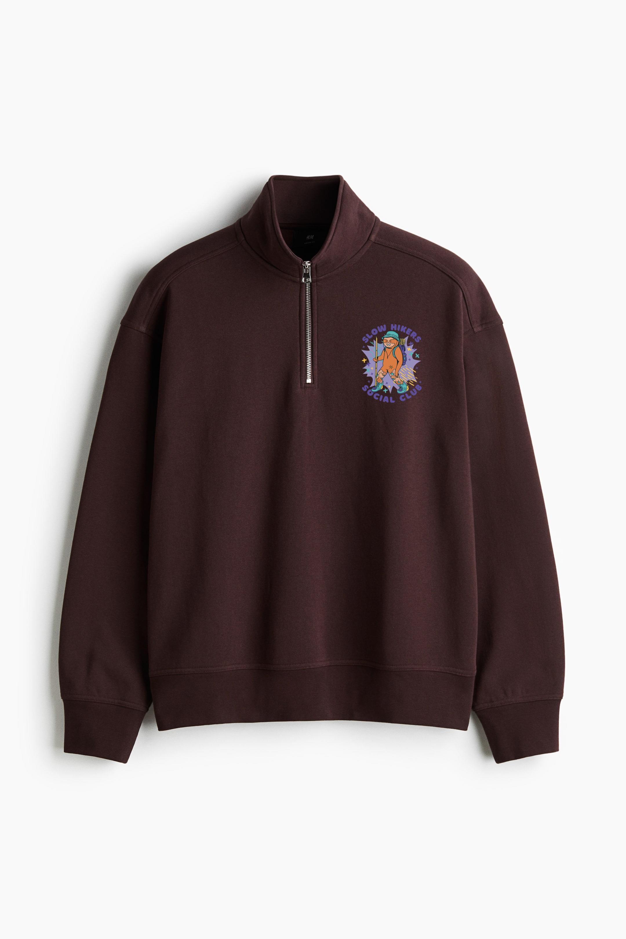 Slow Hikers Social Club Loose-Fit Sweatshirt Collar Jacket Loose-Fit Sweatshirt Collar Jacket – Casual Zip-Up Fleece Jacket with Ribbed Collar and Relaxed Silhouette