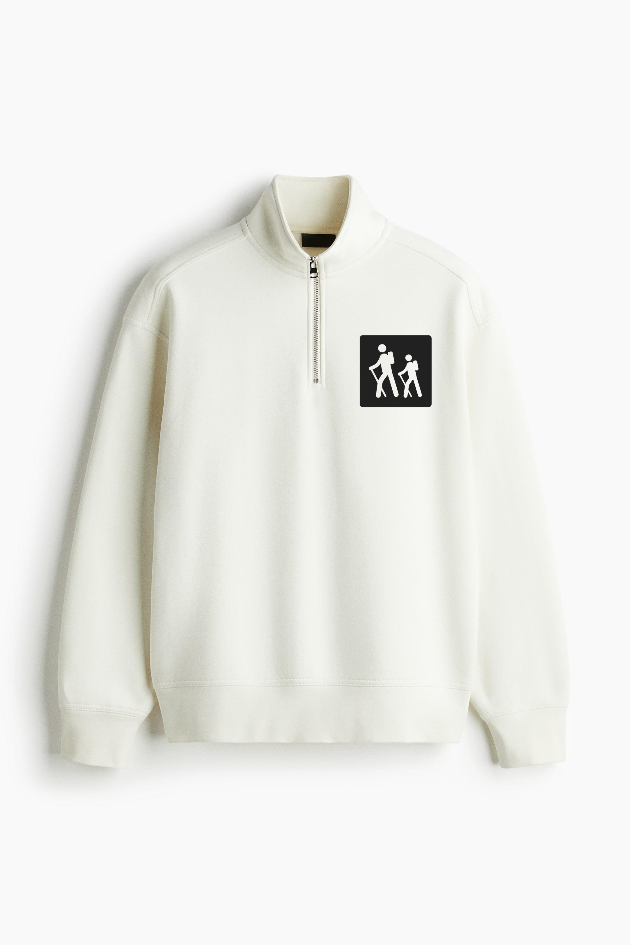 Trekking Square Icon Loose-Fit Sweatshirt Collar Jacket Loose-Fit Sweatshirt Collar Jacket – Casual Zip-Up Fleece Jacket with Ribbed Collar and Relaxed Silhouette